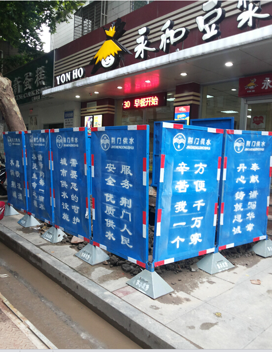 維修處本著經(jīng)濟(jì)可行的原則對(duì)原來(lái)的55塊安全警示牌進(jìn)行了改造,制作了新式底座,對(duì)牌面進(jìn)行了打磨拋光上漆。利用牌面進(jìn)行供水公益廣告宣傳,噴涂了“城市供水設(shè)施需要您的呵護(hù)”、“水是生命之源,請(qǐng)節(jié)約每一滴水”、“辛苦我一個(gè),方便千萬(wàn)家”等公益廣告。這一廣告載體展示了企業(yè)形象,成為街頭巷尾的一道靚麗風(fēng)景線(xiàn),收到了一致好評(píng)。