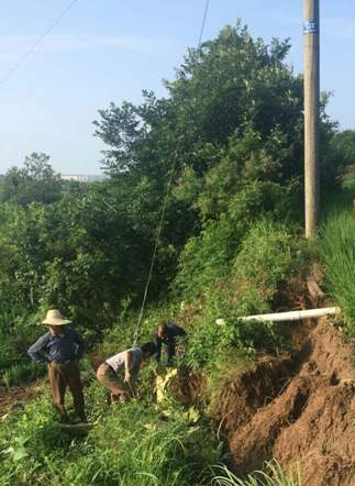 由于7月2日、3日的強降雨引起供水專線35kv線路135#桿處山體滑坡,造成線桿傾斜、拉線松垮等隱患。二水廠迅速啟動防汛搶險預案,組織人員及防汛物質,采取對滑坡段面進行清障整平處理,袋裝沙土覆蓋,設置排水溝及排水管排水,緊固拉線等措施將險情控制在萌芽狀態(tài),確保安全供水。