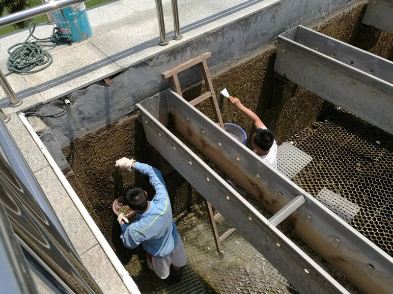 三水廠將絮凝沉淀池清洗列為本次保障工作重點,提前制定周密細致的清洗方案,合理安排清洗時間,有序地推進水位計校驗,刮泥機和其它水下設(shè)備維護和檢修,并對沉淀池、配水槽等進行刮泥清理和消毒。