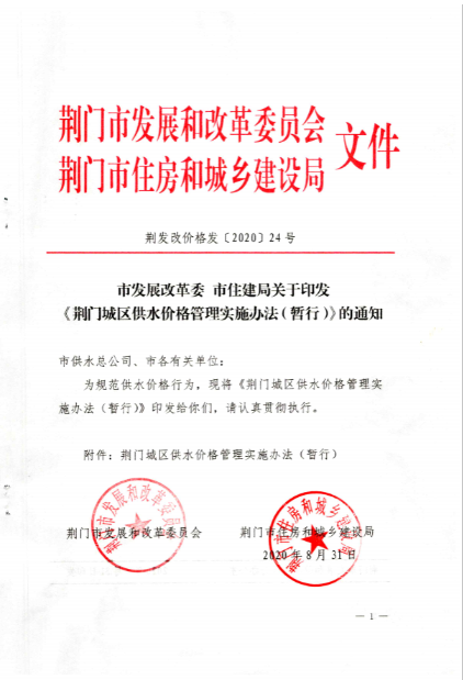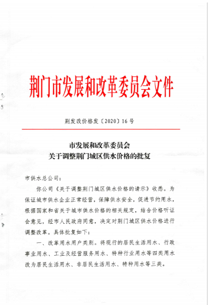 荊門(mén)城區(qū)供水價(jià)格批復(fù)和管理實(shí)施辦法