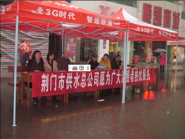 3月15日,市供水總公司黨委書記、副總經(jīng)理陳永根率客服中心、二供所等窗口人員,冒雨在中天街開展消費(fèi)日活動,宣傳供水政策知識、現(xiàn)場接受用戶咨詢、認(rèn)真開展服務(wù)。