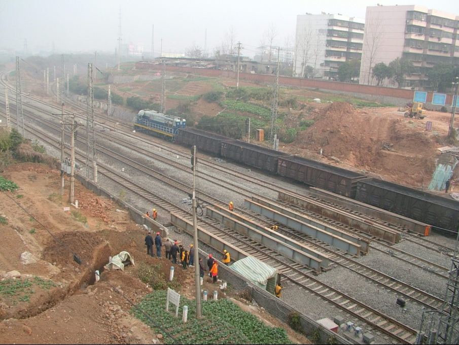 經(jīng)供水公司與鐵路部門協(xié)調(diào),武漢鐵路局、武鐵設(shè)計(jì)院、西南設(shè)計(jì)院擬訂采用架空項(xiàng)進(jìn)法穿越焦柳鐵路線5股道,定制鋼筋砼套管,管節(jié)間采用鋼板內(nèi)漲圈接口。在調(diào)查鐵路信號(hào)、通信光電纜徑路及數(shù)量,在確保鐵路運(yùn)輸安全的原則下進(jìn)行防護(hù)設(shè)計(jì)。武漢鐵路局工務(wù)檢測(cè)所編制施工圖。項(xiàng)目委托武鐵江騰公司具體施工。供水公司則完成穿管、銜接施工。