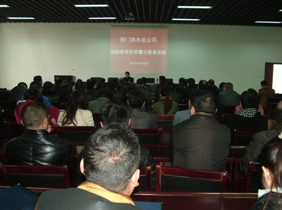 近日,荊門市供水總公司與荊門市委黨校聯(lián)合舉辦一期干部培訓(xùn)班,二天的培訓(xùn)時間緊湊、內(nèi)容豐富,省委黨校高斌、市委黨校張旭平等知名教授為干部職工授課,進(jìn)行了十八屆三中全會精神解讀,領(lǐng)導(dǎo)干部創(chuàng)新素質(zhì)與創(chuàng)新能力、公務(wù)社交中的語言藝術(shù)與溝通技巧等講座,最后還由東寶區(qū)檢察院副檢察長趙龍上了一堂‘預(yù)防職務(wù)犯罪法律講座。參會人員都很有收獲,提升了干部職工綜合素質(zhì)。