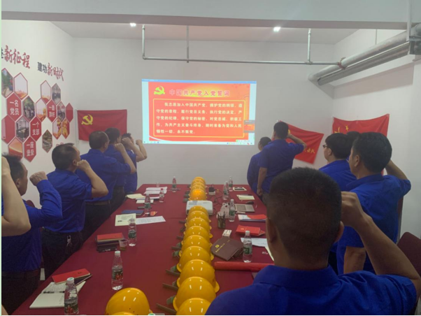 全體黨員面對黨旗莊嚴(yán)宣誓,重溫入黨誓詞,感悟入黨初心。
