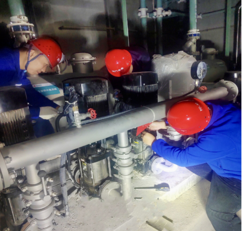 [圖中左一為更換的新泵機(jī)]