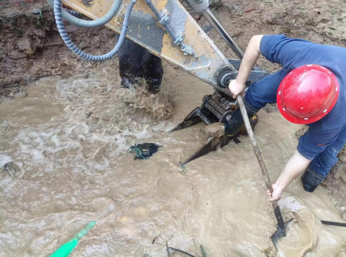 經(jīng)初步判斷,原因是地基沉降不均勻?qū)е鹿艿缿?yīng)力過大。因化工廠內(nèi)地下管線復(fù)雜,荊襄公司結(jié)合實(shí)際迅速制定搶修方案,通過機(jī)械和人工配合作業(yè)。開挖過程中,管道中余水不停滲到基坑,需要不間歇抽水、排水。雖然氣溫已近冰點(diǎn),維修人員沒有絲毫退縮,在齊膝的積水中奮戰(zhàn)兩個(gè)多小時(shí),完成路基開挖。