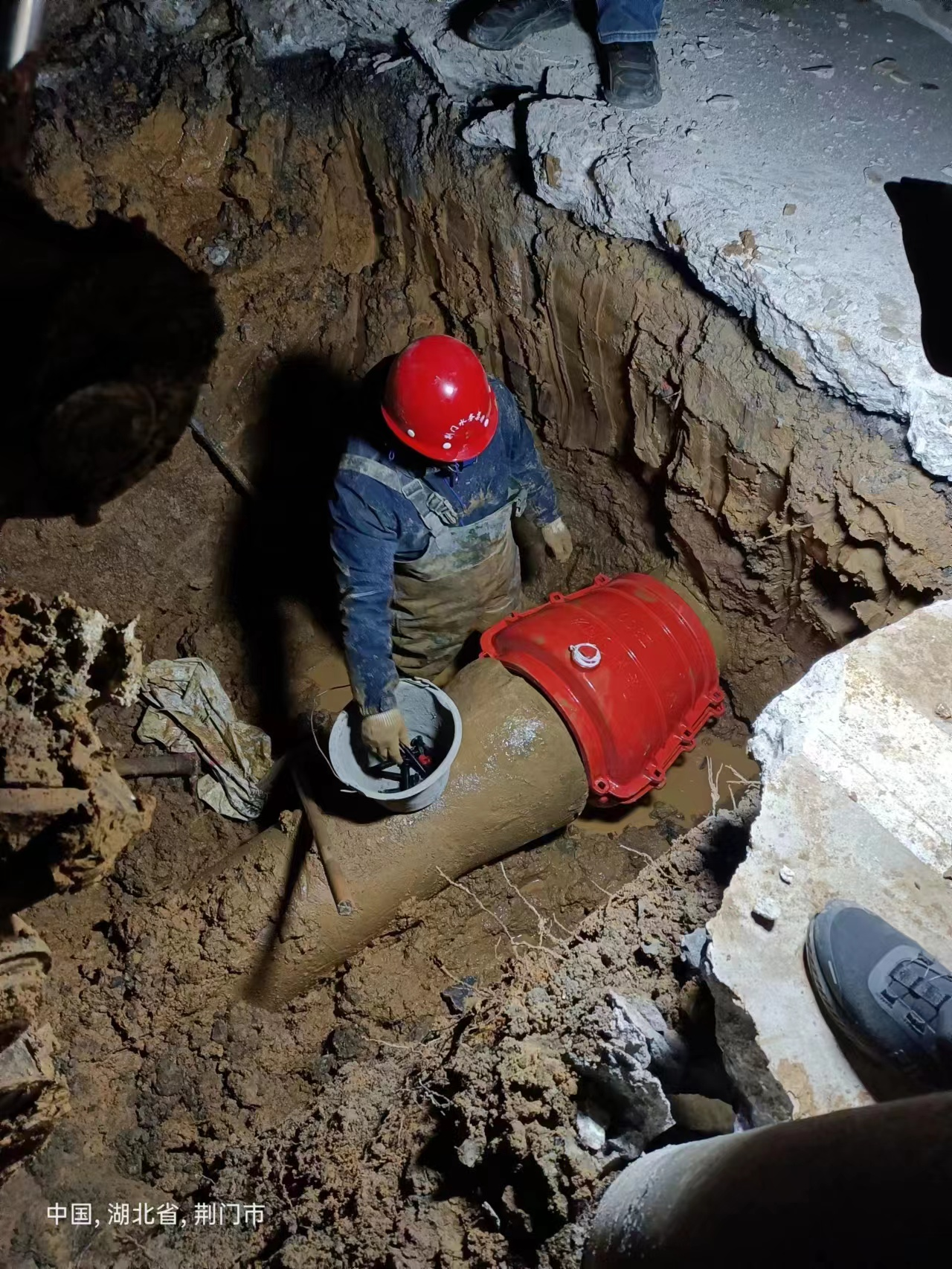 圖為12月23日城南新區(qū)關帝路DN300砼管維修現(xiàn)場