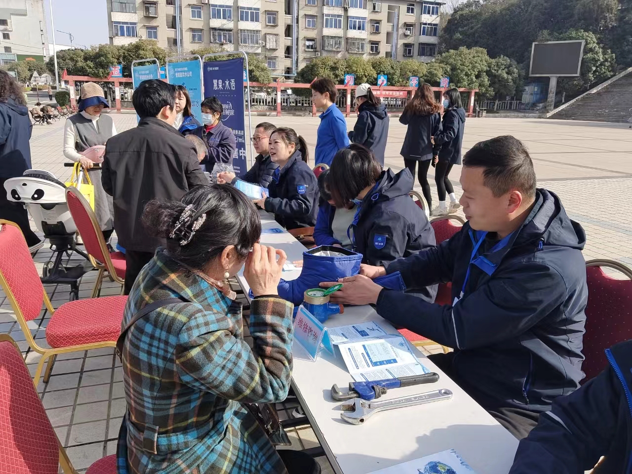 本次活動(dòng)內(nèi)容主要包括供水知識(shí)科普、管道直飲水業(yè)務(wù)咨詢及現(xiàn)場(chǎng)答疑。時(shí)逢世界水日,水務(wù)藍(lán)在為用戶展示正確的水表防凍措施的同時(shí),也分享了不少節(jié)水小妙招。