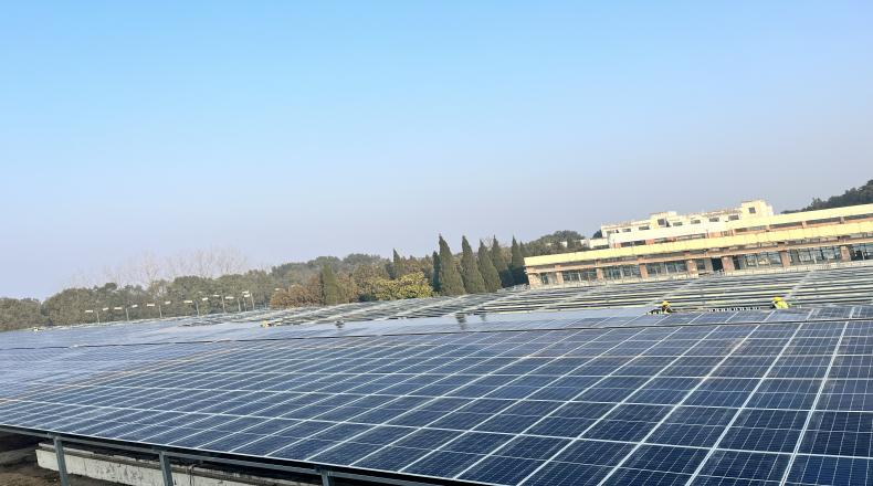 光伏產(chǎn)品是近年來推動我國外貿(mào)穩(wěn)規(guī)模、優(yōu)結(jié)構(gòu)的“新三樣”之一,水務(wù)集團積極響應(yīng)國家“雙碳”政策,在充分調(diào)研基礎(chǔ)上,于2023年11月選址第二水廠,充分利用構(gòu)筑物上方空間,架設(shè)光伏系統(tǒng)和配套電氣設(shè)備,采用目前較為成熟的分布式光伏發(fā)電技術(shù),裝機總?cè)萘?.968兆瓦,安裝光伏板1669塊。