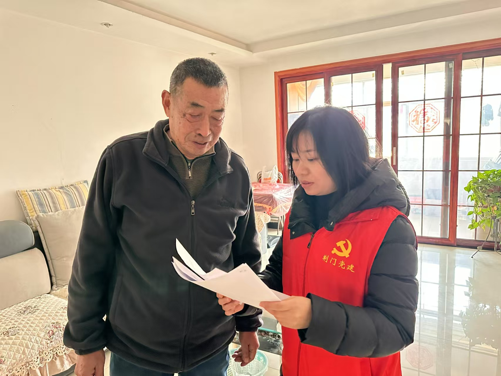 圖為工作人員入戶慰問老人