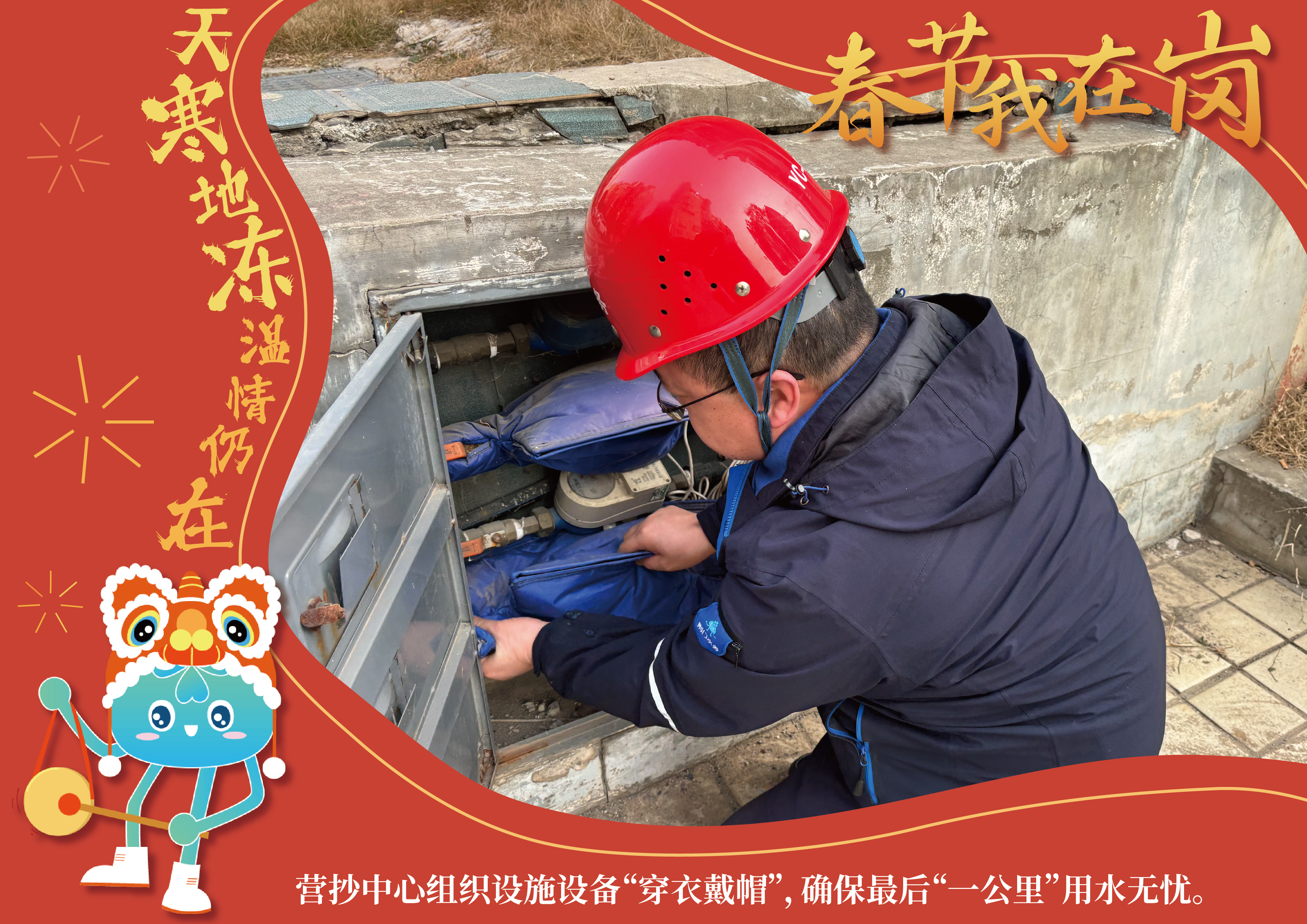 春節(jié)期間,在崗值守的水務(wù)鐵軍們將堅持用戶至上服務(wù)宗旨,默默守候在城市的各個角落,陪伴廣大市民用戶歡度新春佳節(jié)。