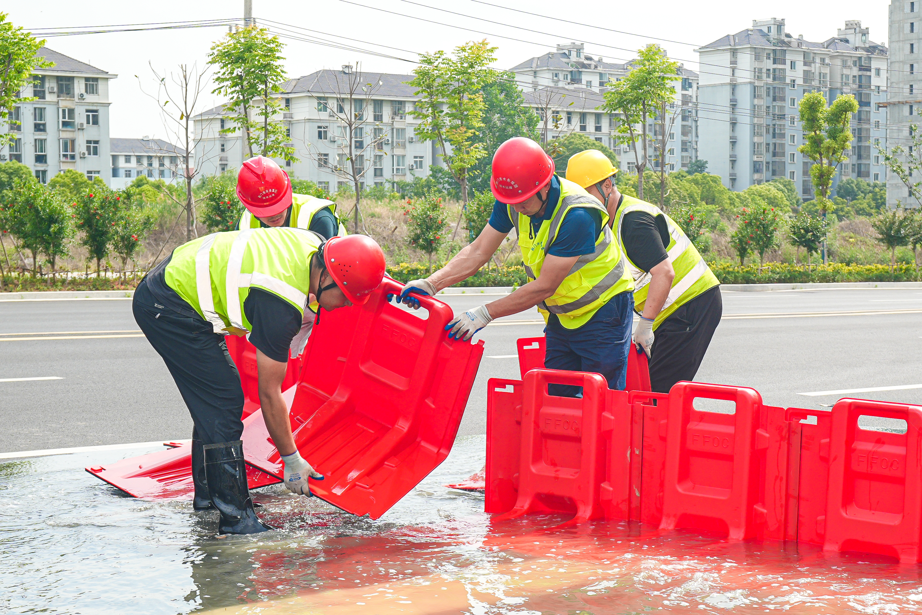 用高強(qiáng)度擋水板進(jìn)行物理阻隔,防止路面雨水進(jìn)入車庫、小區(qū)