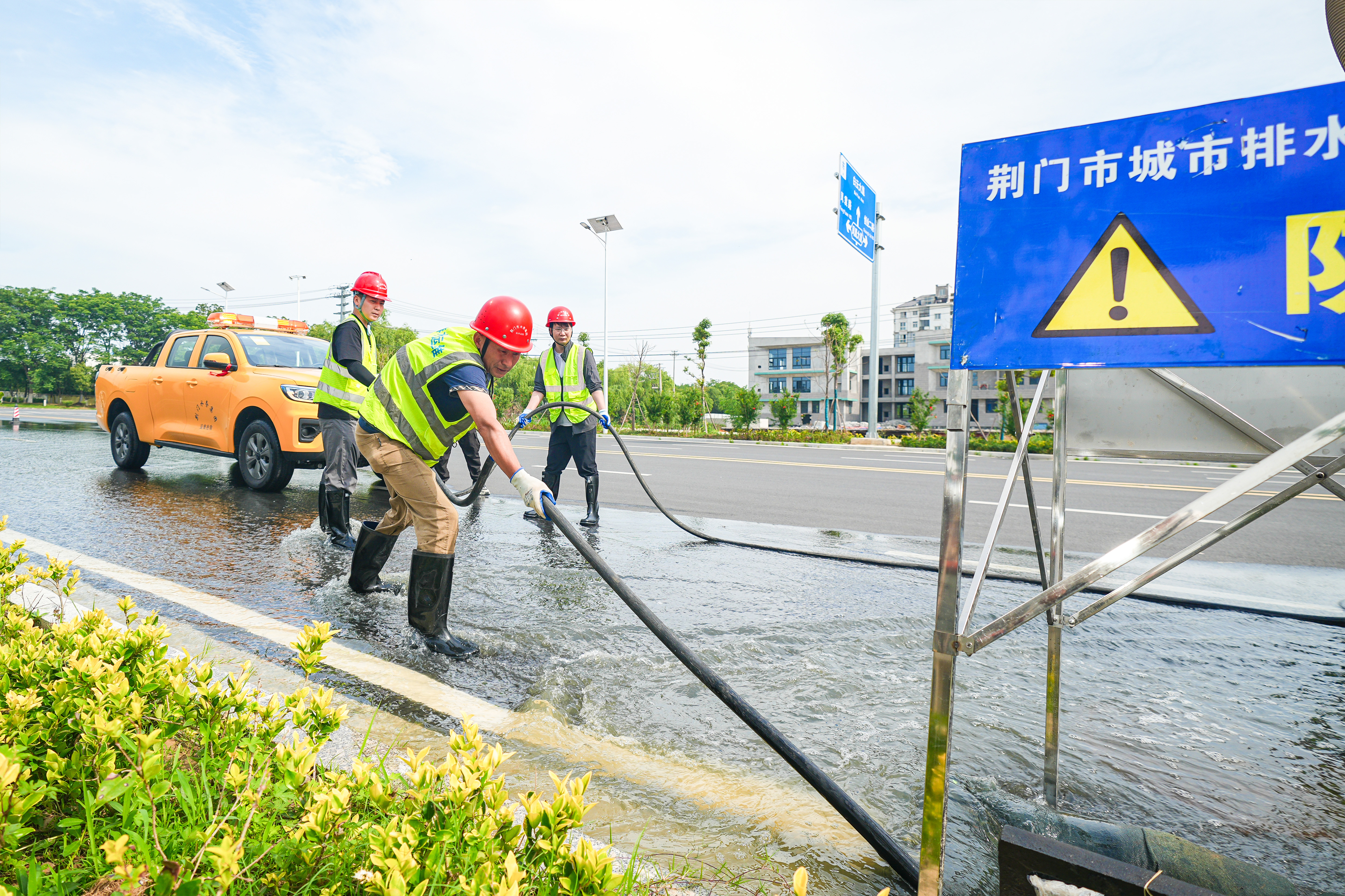 運(yùn)用大功率移動泵車強(qiáng)排泵對道路積水位置進(jìn)行抽排