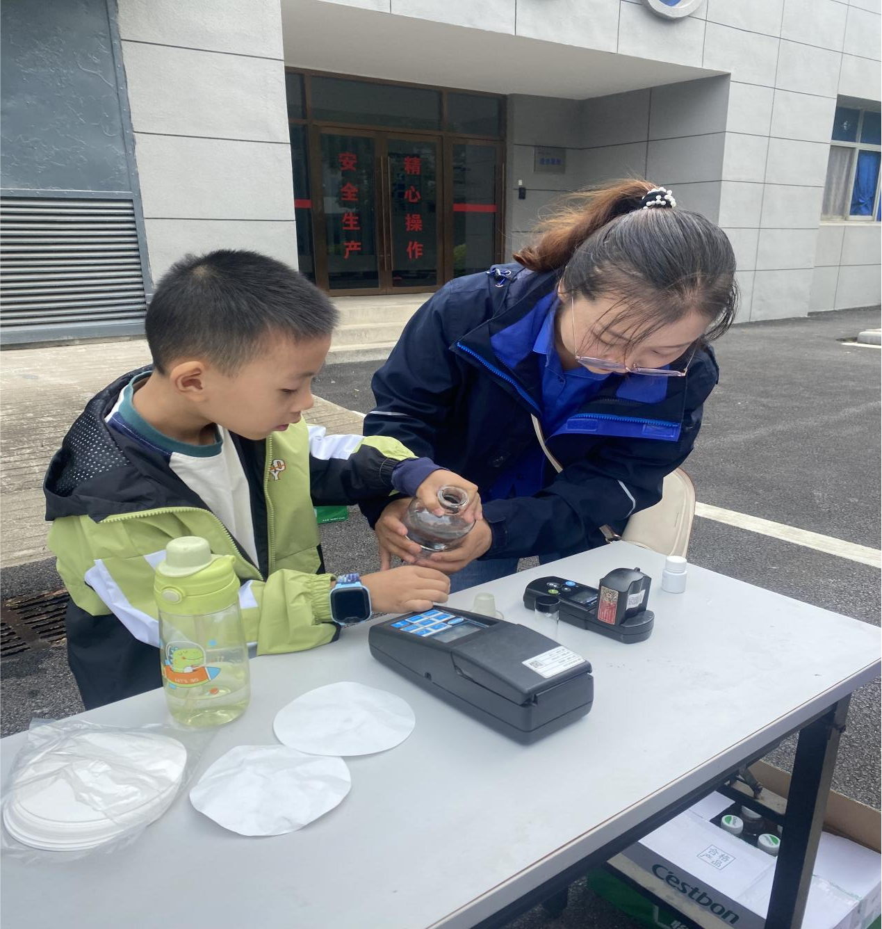 為讓水質(zhì)安全變得“可觸可感”,現(xiàn)場還設(shè)置了水質(zhì)檢測互動小課堂。集團專業(yè)化驗員先是生動演示余氯含量測定、濁度對比實驗,然后邀請小朋友們在家長陪同下親手操作檢測儀器。當(dāng)看到自己檢測的數(shù)據(jù)與國家標(biāo)準(zhǔn)完全吻合時,孩子們高興地跳了起來。家長們紛紛點贊“這樣的實踐課比書本更生動,讓我們對日常用水更安心!”