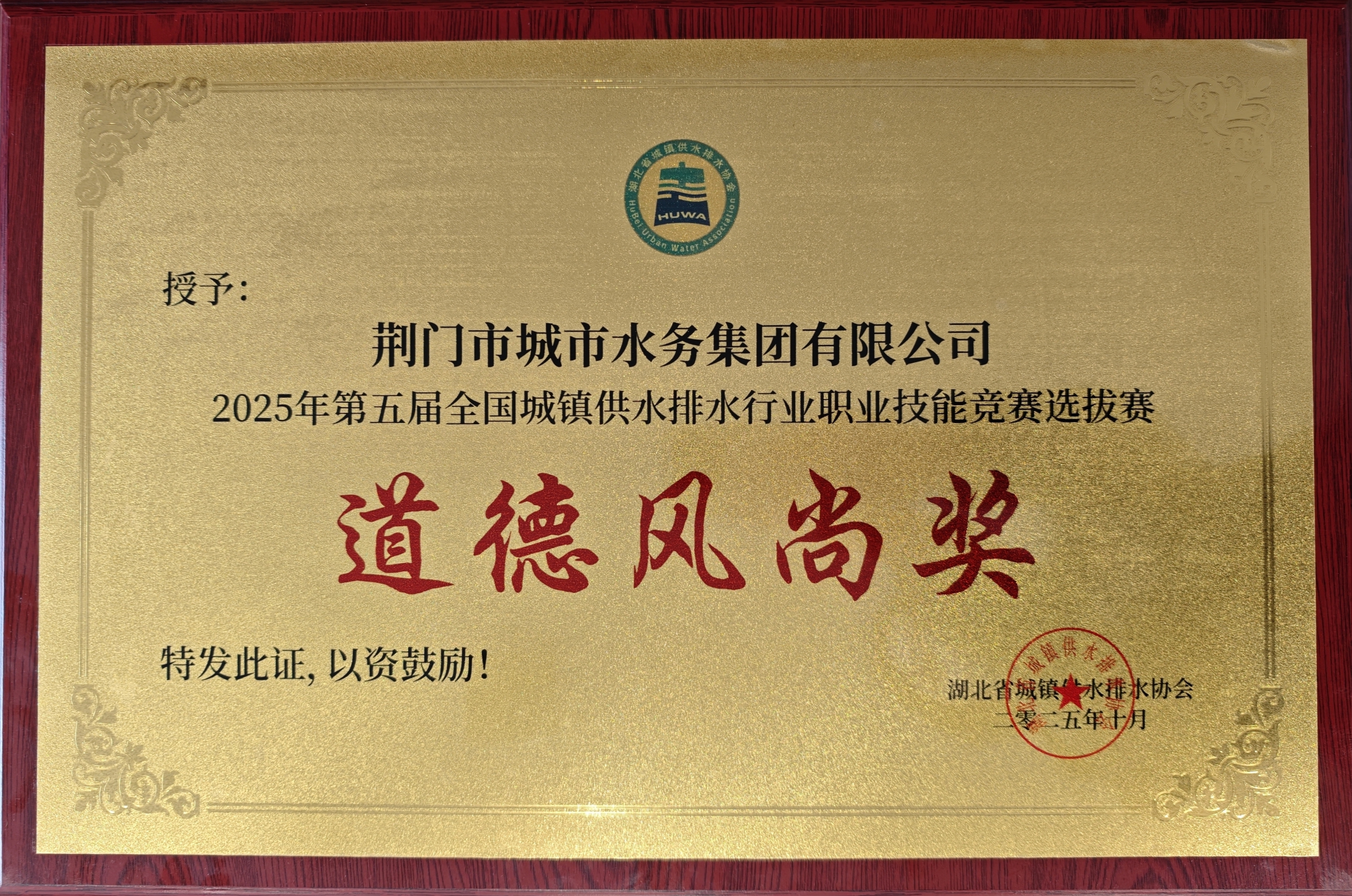 近日,荊門水務(wù)集團(tuán)成功獲評(píng)第五屆全國(guó)城鎮(zhèn)供水排水行業(yè)職業(yè)技能競(jìng)賽湖北省選拔賽道德風(fēng)尚獎(jiǎng)。集團(tuán)參賽選手不負(fù)眾望,取得佳績(jī)。詠泉公司付傳艷、余怡康榮獲個(gè)人優(yōu)秀獎(jiǎng),排水公司李治洋獲得第七名。
