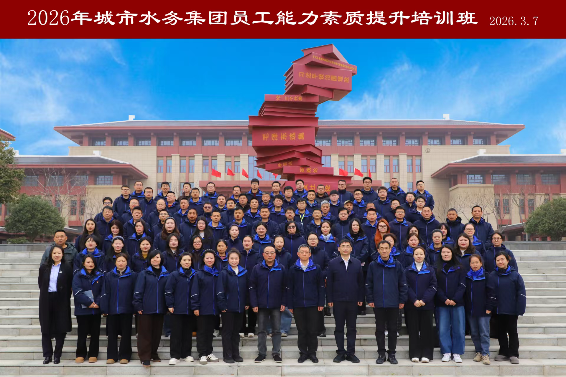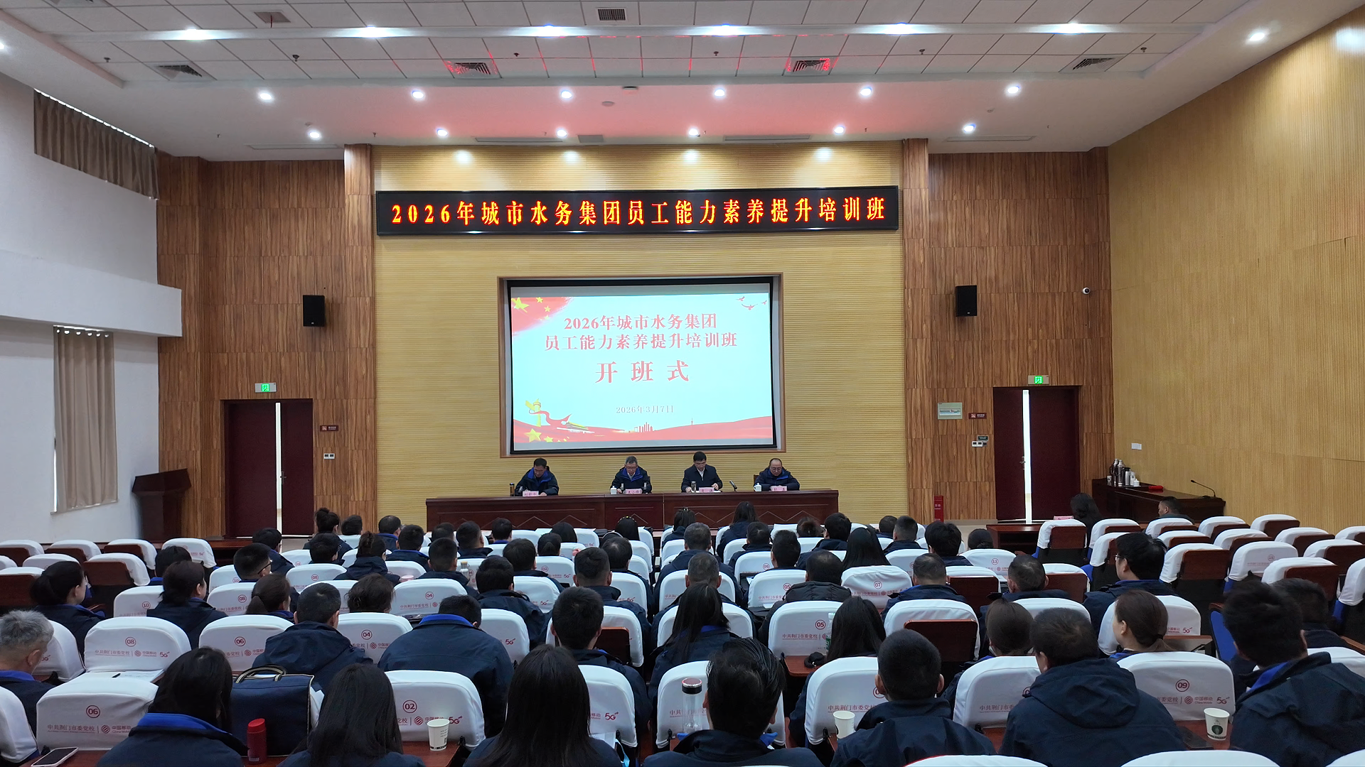 為深入貫徹省委《全省深化拓展“干部素質(zhì)提升年”實(shí)施方案》相關(guān)要求,進(jìn)一步加強(qiáng)人才隊(duì)伍建設(shè),3月7日,荊門市城市水務(wù)集團(tuán)有限公司(以下簡稱“集團(tuán)”)員工素質(zhì)提升培訓(xùn)班(第五期)在中共荊門市委黨校正式開班。集團(tuán)業(yè)務(wù)骨干共100人分兩批參訓(xùn)。