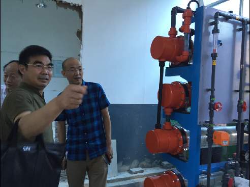 一水廠為城市備用水廠,始建于1969年,以前凈化工藝采取傳統(tǒng)的加氯(氯氣瓶儲存供應(yīng))方式,考慮到一水廠地處省重點中學(xué)龍泉中學(xué)旁,人口密集,存在?;沸孤┌踩[患,公司通過考察,慎重決策,在內(nèi)地(目前僅在沿海地區(qū)發(fā)達城市應(yīng)用)首家引進次氯酸鈉加氯(電解反應(yīng),邊制造邊供應(yīng))方式,投資50萬進行工藝改造,徹底解除這一公共安全隱患。在改造現(xiàn)場,公司黨委書記、總經(jīng)理陳永根要求,一水廠次氯酸鈉加氯改造項目要加快建設(shè),確保6月底前投運,同時要做好職工培訓(xùn)工作,確保人人能按新工藝規(guī)程進行熟練操作,確保公共安全。