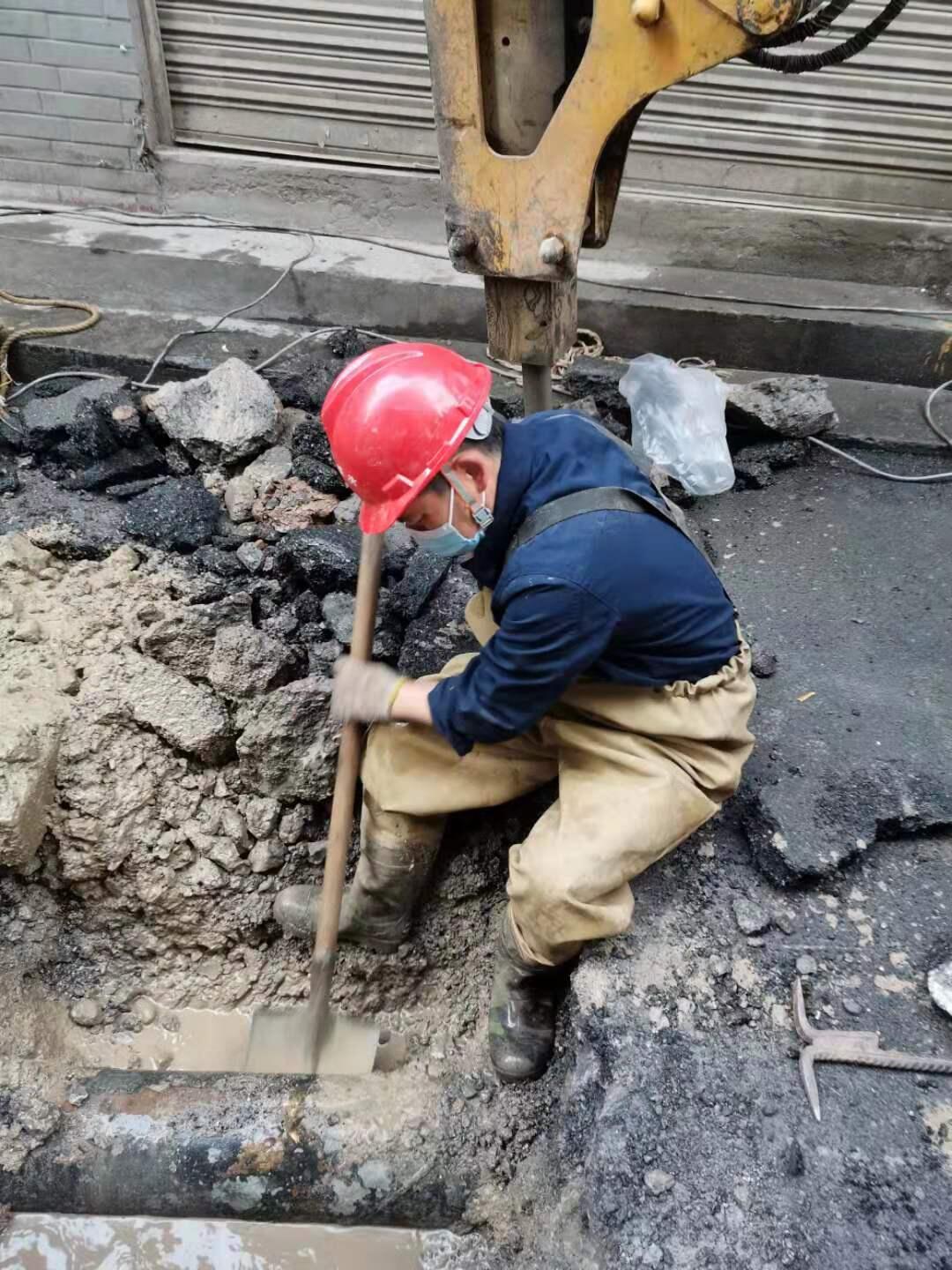 黃磊在建設(shè)街DN200管道搶修中開鑿出搶修坑