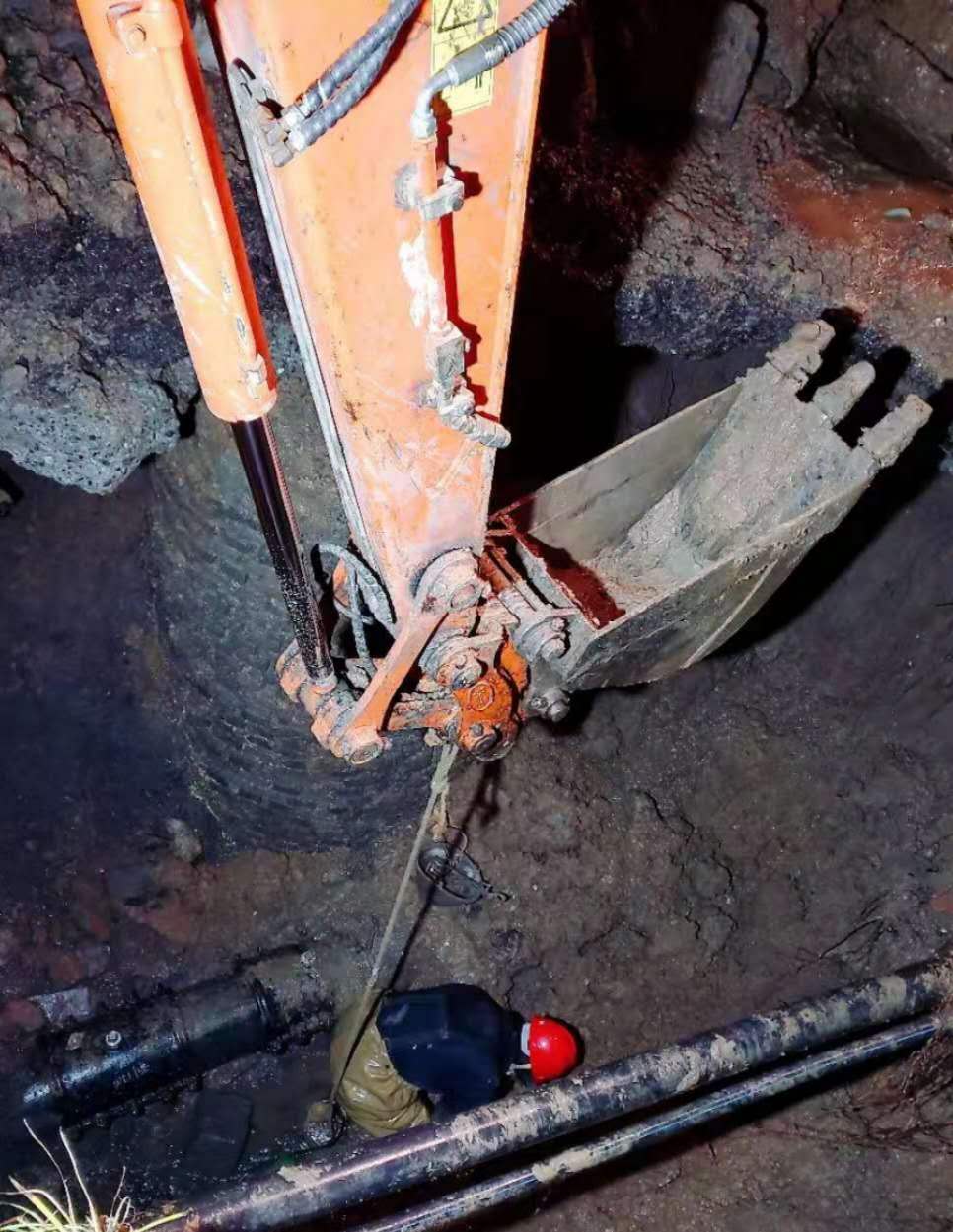 1月28日8時(shí),白云大道農(nóng)行家屬區(qū)門口DN100管道爆裂,因在人行道上,地下管線交錯(cuò)復(fù)雜,不能用工程機(jī)械開挖,黃磊帶領(lǐng)班組人員硬是挨著管線用手刨釬撬,人工開鑿出搶修坑,在連續(xù)奮戰(zhàn)3個(gè)小時(shí)后,趕在用水高峰期搶修完畢給用戶通水。這邊剛搶修完,那邊又接到值班電話通知建設(shè)街DN200管道漏水,如不及時(shí)搶修,在漏水失壓的情況下會造成大面積用戶無水,黃磊沒有一絲懈怠,立即組織人員、機(jī)械到現(xiàn)場,簡單吃了一桶泡面又投入到搶修工作中,搶修現(xiàn)場居民感動不已,紛紛送來手套、口罩、方便面等慰問品。下午3時(shí),多輝農(nóng)產(chǎn)品市場因封路時(shí)挖機(jī)將DN50管道拉斷,考慮到已經(jīng)連續(xù)奮戰(zhàn)多時(shí),公司領(lǐng)導(dǎo)準(zhǔn)備安排其它維修班組去搶修,其他隊(duì)伍集結(jié)需要時(shí)間會耽誤疫情控制,而且位處垃圾堆有感染風(fēng)險(xiǎn),黃磊主動請纓出戰(zhàn)。晚上22時(shí),黃磊又接到出警電話,因楊家橋DN300管道爆裂,路上汪洋一片。他其實(shí)搶修完才到家一會,但黃磊沒有遲疑,立即聯(lián)系機(jī)械進(jìn)場,在班組微信群通知集結(jié)路線,沿路接人,在他的帶領(lǐng)下,從維修材料準(zhǔn)備到人員機(jī)械到位用了不到40分鐘,因開挖后形成的基坑深度達(dá)近5米,為保障人工深基坑作業(yè)安全,黃磊一刻也沒離開基坑,直到凌晨5時(shí)搶修完畢。