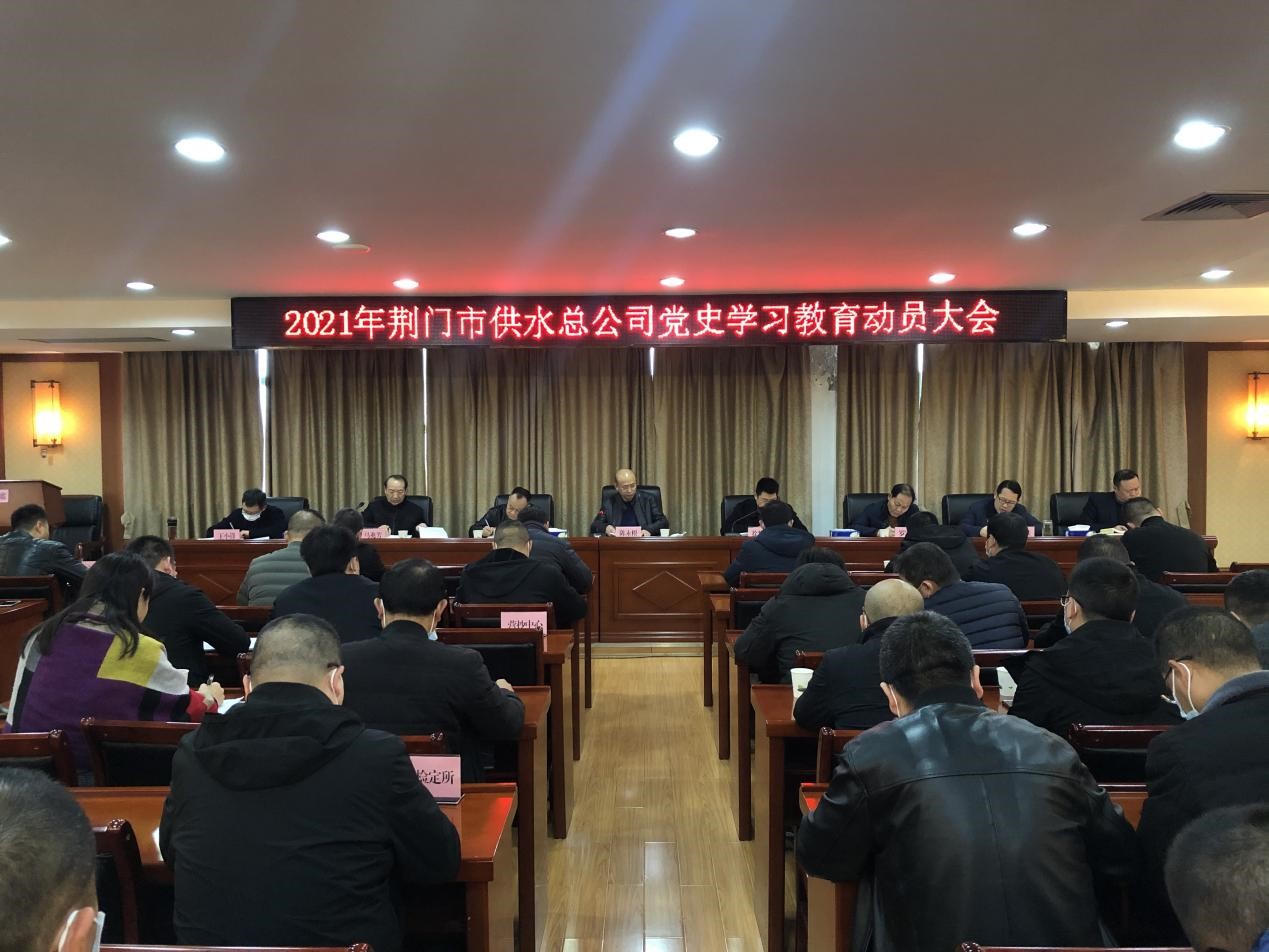 為深入學習貫徹習近平總書記在黨史學習教育動員大會上的重要講話精神,認真落實省、市和市國資委黨史教育動員大會精神,2021年4月1日上午,市供水總公司召開黨史學習教育動員大會。公司黨委書記、總經(jīng)理陳永根出席并講話,公司黨委班子成員、全體黨員干部職工參會。