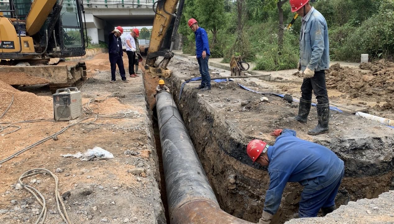 為了使黨史學習教育活起來,市供水總公司聚焦主責主業(yè),今年初荊門市給排水安裝工程公司會同市規(guī)劃設計院、市建管中心在長城汽車產業(yè)園現場進行勘察,確定管位和施工方案。2月18日方案出臺后,工人立即正式進場施工。因近幾月雨水天氣較多,項目部及時調整施工方案,增加施工人員,多次協調溝通武漢高速主管部門和當陽高速路政部門,申報下穿高速公路段的管道施工方案,爭取縮短審批時間,確保工程順利推進、按期完成。