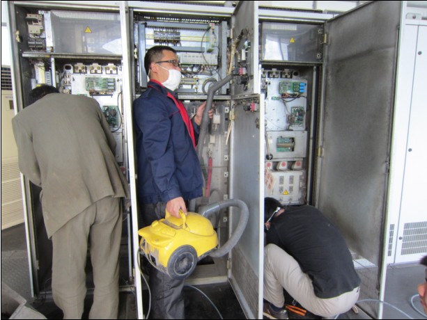 4月25日,夏季供水高峰季節(jié)即將到來,市供水公司三水廠組織維修人員對廠送水泵房1#500kw變頻機組進行了整體檢修。圖為專業(yè)人員正在檢修變頻柜。